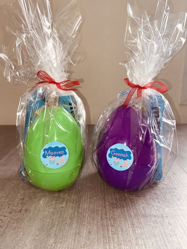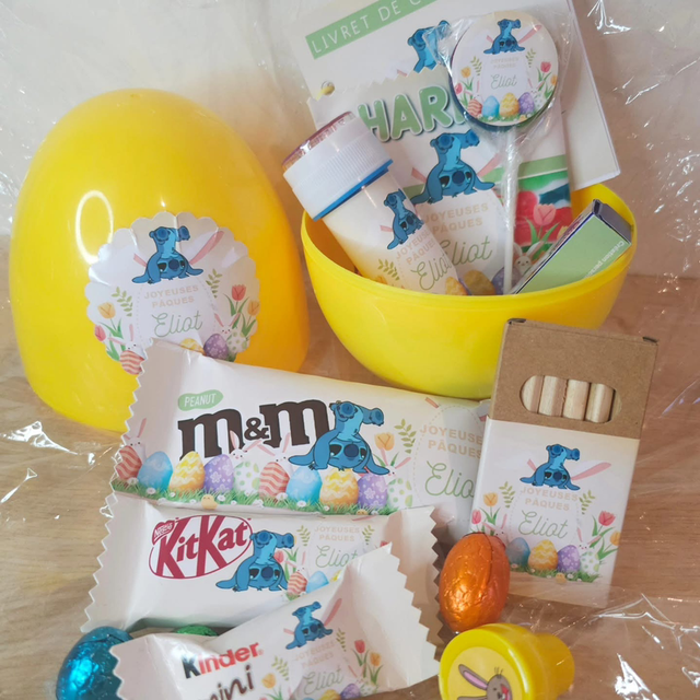 Oeuf de dimention 16 cm garnie de gourmandise totalement personnalisé sur le thème de votre choix.